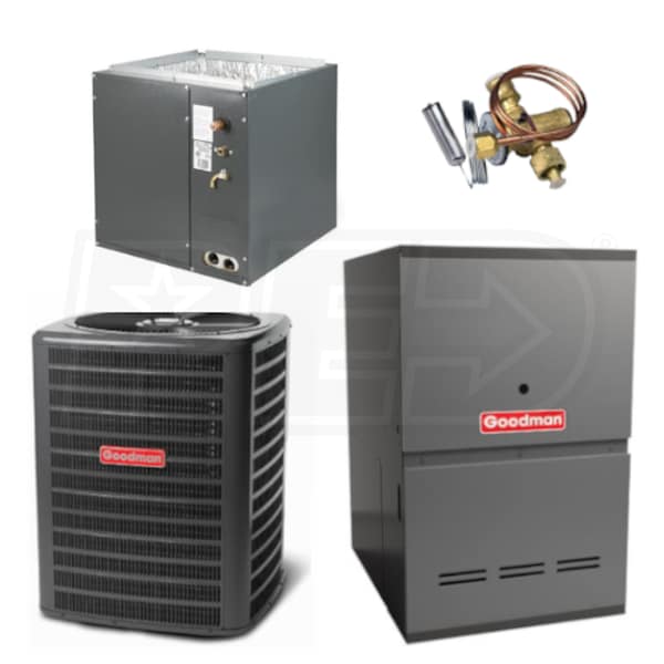 Goodman GSX1630GCES96040D - 2.5 Ton Cooling - 40k BTU/Hr Heating - Air Conditioner + Multi-Speed Furnace Kit -15.0 SEER - 96% AFUE - For Downflow Installation