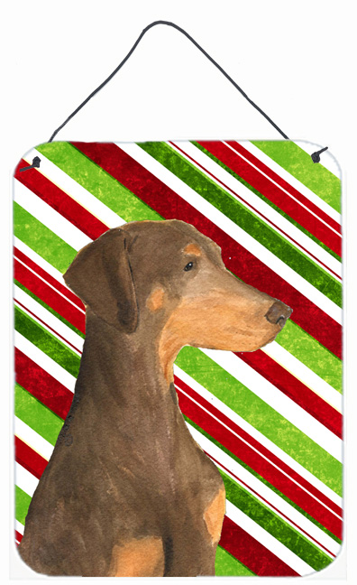 Carolines Treasures SS4548DS1216 12 x 16 in. Doberman Candy Cane Holiday Christmas Aluminium Metal Wall Or Door Hanging