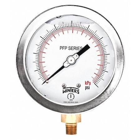 Vacuum Gauge, General Purpose, 4 in, Basic Gauge Case Material Stainless Steel, Basic Gauge Wetted Parts Brass, 1/4 in, MNPT, Gauge Connection Location Bottom, -30 to 0, +/-1.00 Percent, Gauge Panel Mountable No, Liquid Filled Yes, Gauge Case Material 304 Stainless Steel, Gauge Case Color Gray, Calibration Certificate Included No