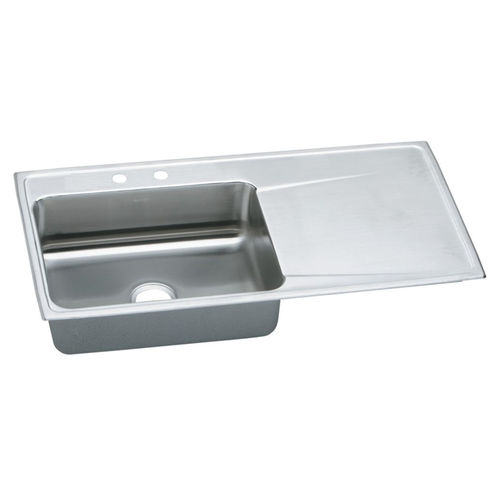 - Luster tone sink bowl features integral fan pitched drain board