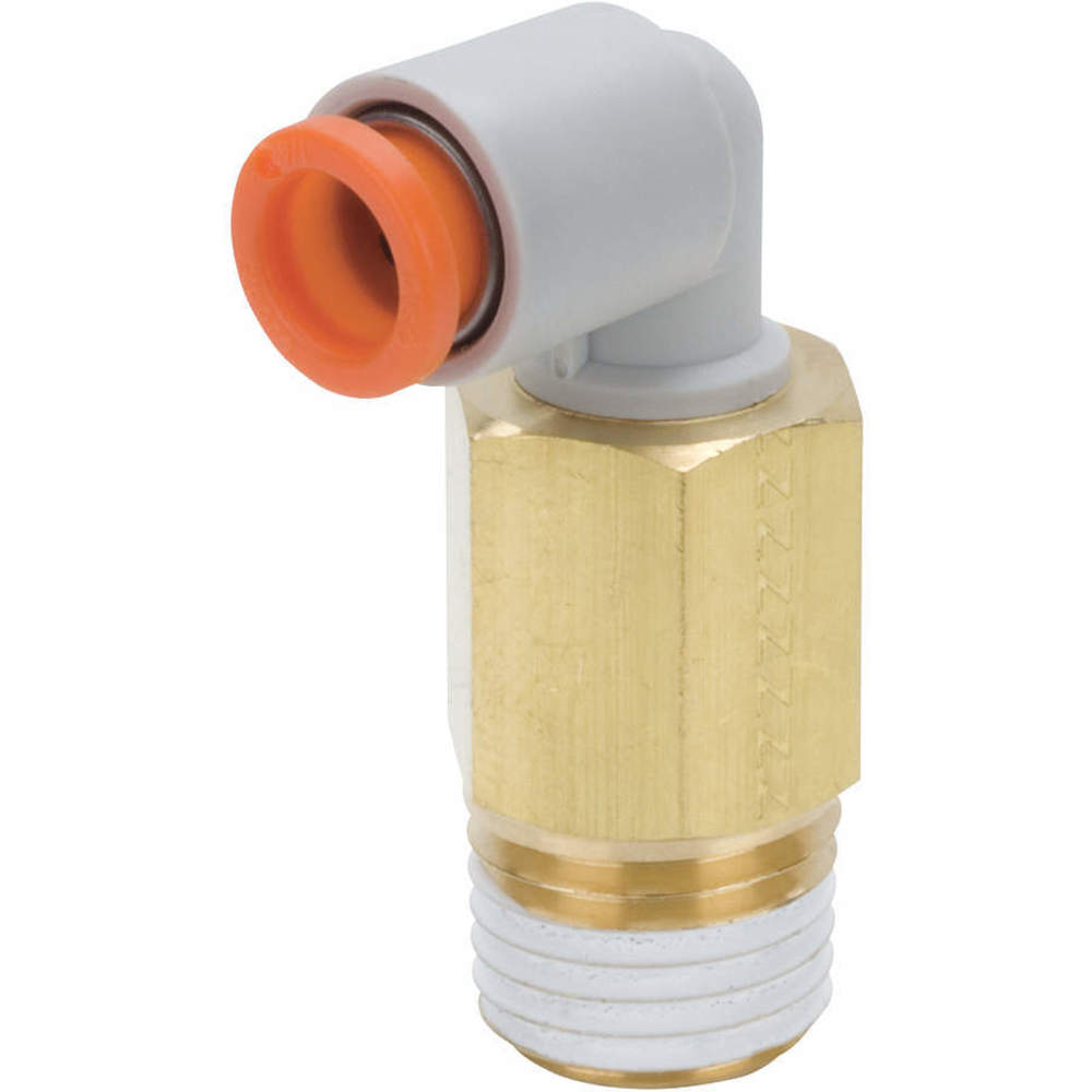 SMC KQ2W13-37AS PBT & Brass Push-to-Connect Tube Fitting with Sealant, Extended Elbow, 1/2" Tube OD x 1/2" NPT Male