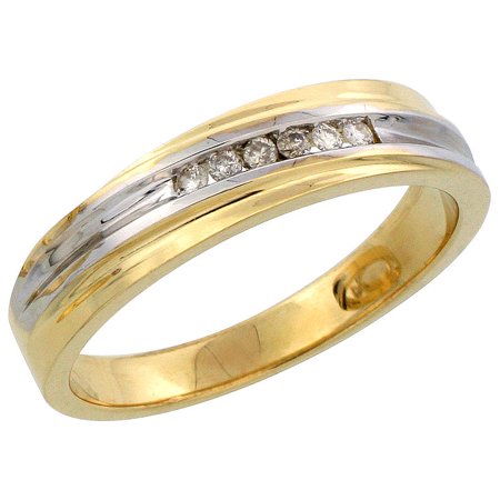 14k Gold Men's Diamond Band w/ Rhodium Accent, w/ 0.09 Carat Brilliant Cut Diamonds, 3/16 in. (5mm) wide