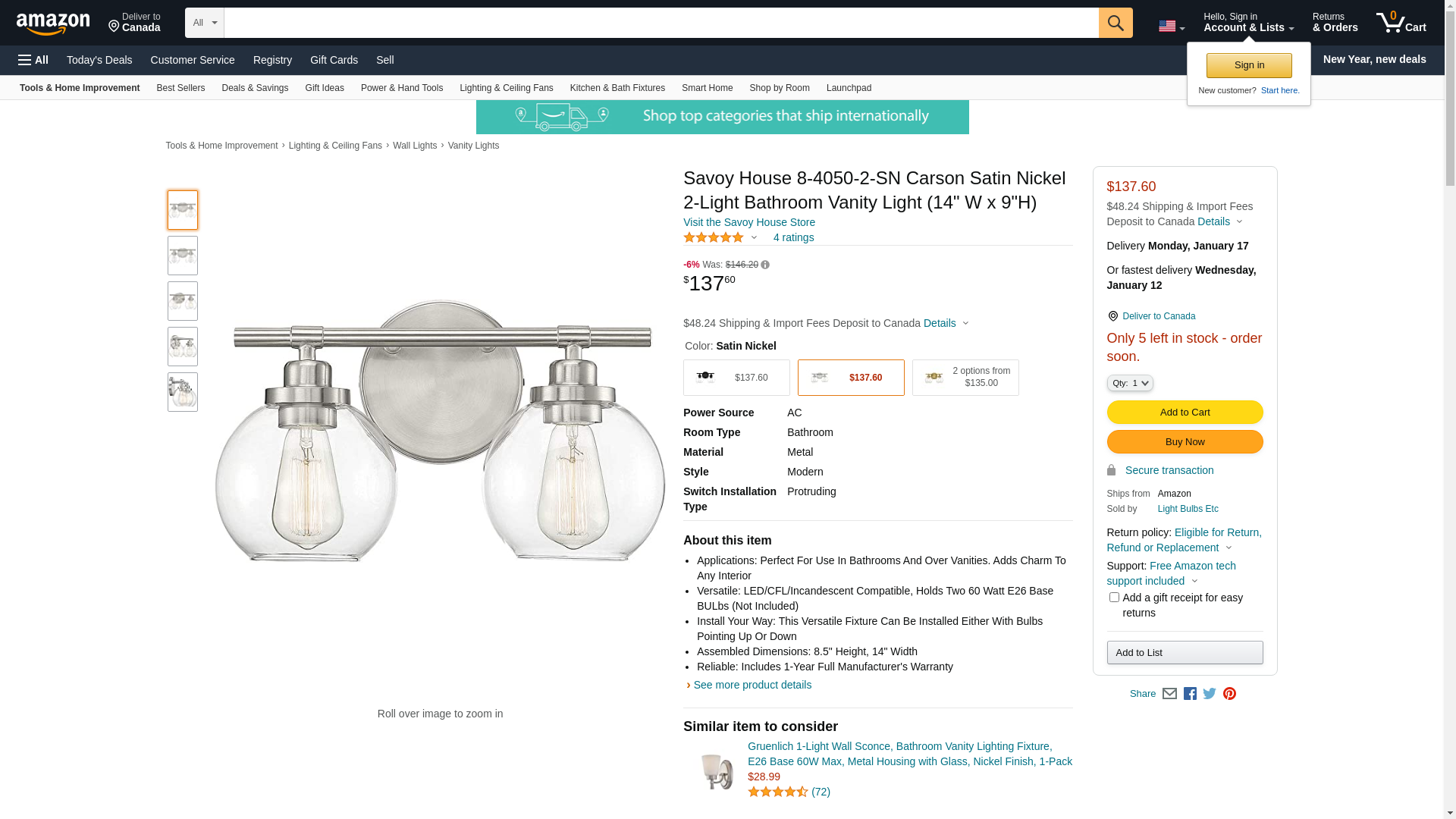 | brecherslighting.com | 8-4050-2-SN | 1 | 155 | 1 | 1 @ $186.00 |