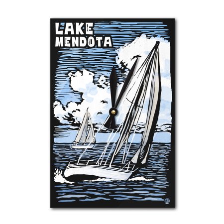 Wisconsin - Lake Mendota - Sailboat - Scratchboard (Acrylic Wall Clock)