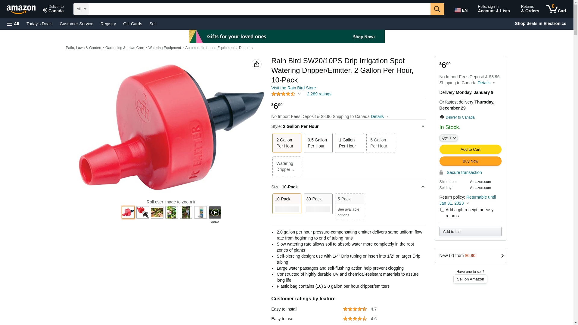 | Feature | Price For: Each Features: Pressure Compensating Emitter Provides Consistent 2.0 GPH Green Environmental Attribute: Product Contributes to Reducing Water Consumption Function: Distribute Water Item: Spot Watering Emitters Color: Red/Black For Use With: 1/4" and 1/2" Tubing Connection: Barbed Material: Plastic Country of Origin (subject to change): United States |