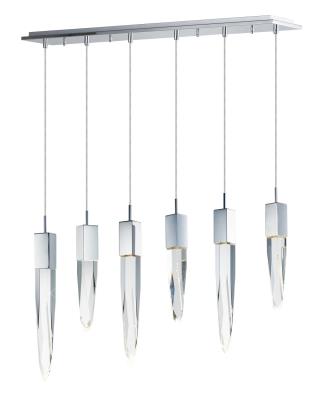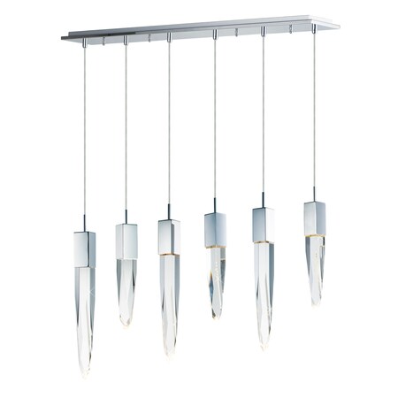ET2 E31245-20PC Quartz Clear Beveled Crystal Linear LED Pendant Ceiling Lighting, 6-Light 36 Total Watts, 21"H x 39"L x 6"W, Polished Chrome