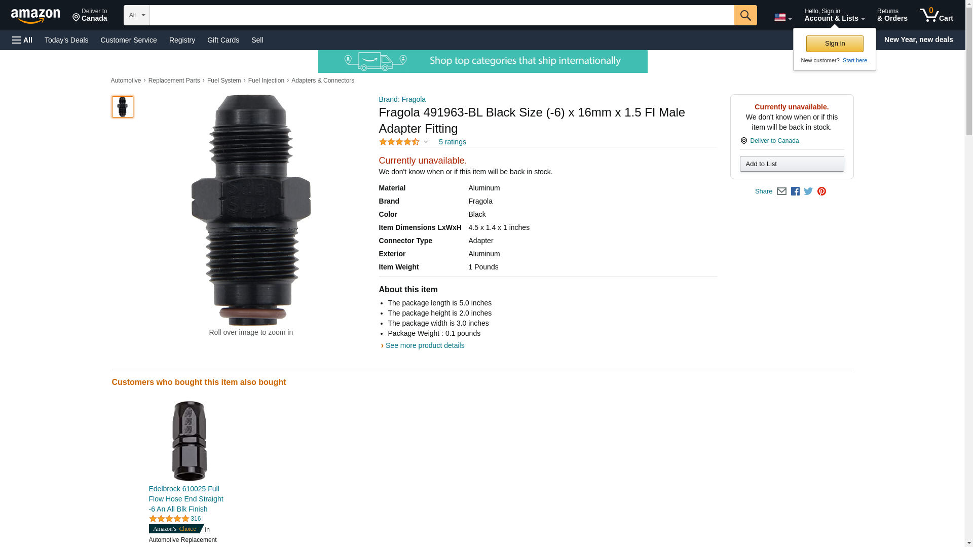 Toolschest.com|Toolschest.com. Fragola 491963-BL -6 AN x 16 mm x 1.5 in. Fuel Injection Male Adapter Fitting - Black