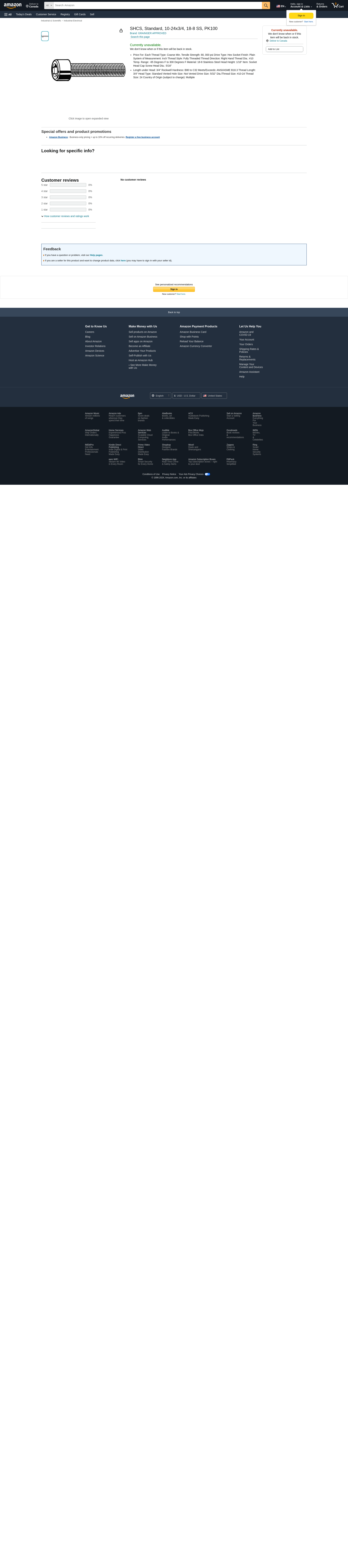 ' Socket Head Cap Screw, Standard, #10-24, Material 18-8 Stainless Steel, Plain Finish, Thread Size 24, Drive Type Hex Socket, Drive Size 5/32 In., Thread Type Coarse, Thread Style Fully Threaded, Thread Direction Right Hand, Length under Head 3/4 In., Thread Length 3/4 In., Head Height 1/16 In., Thread Dia. #10, Package Quantity 100 '