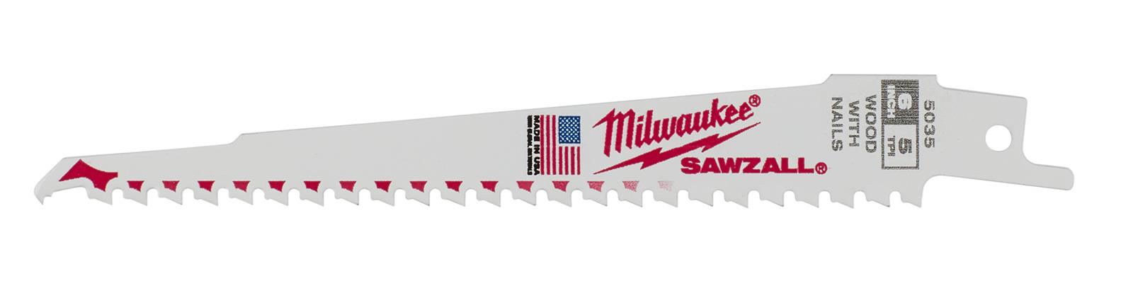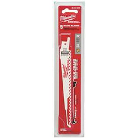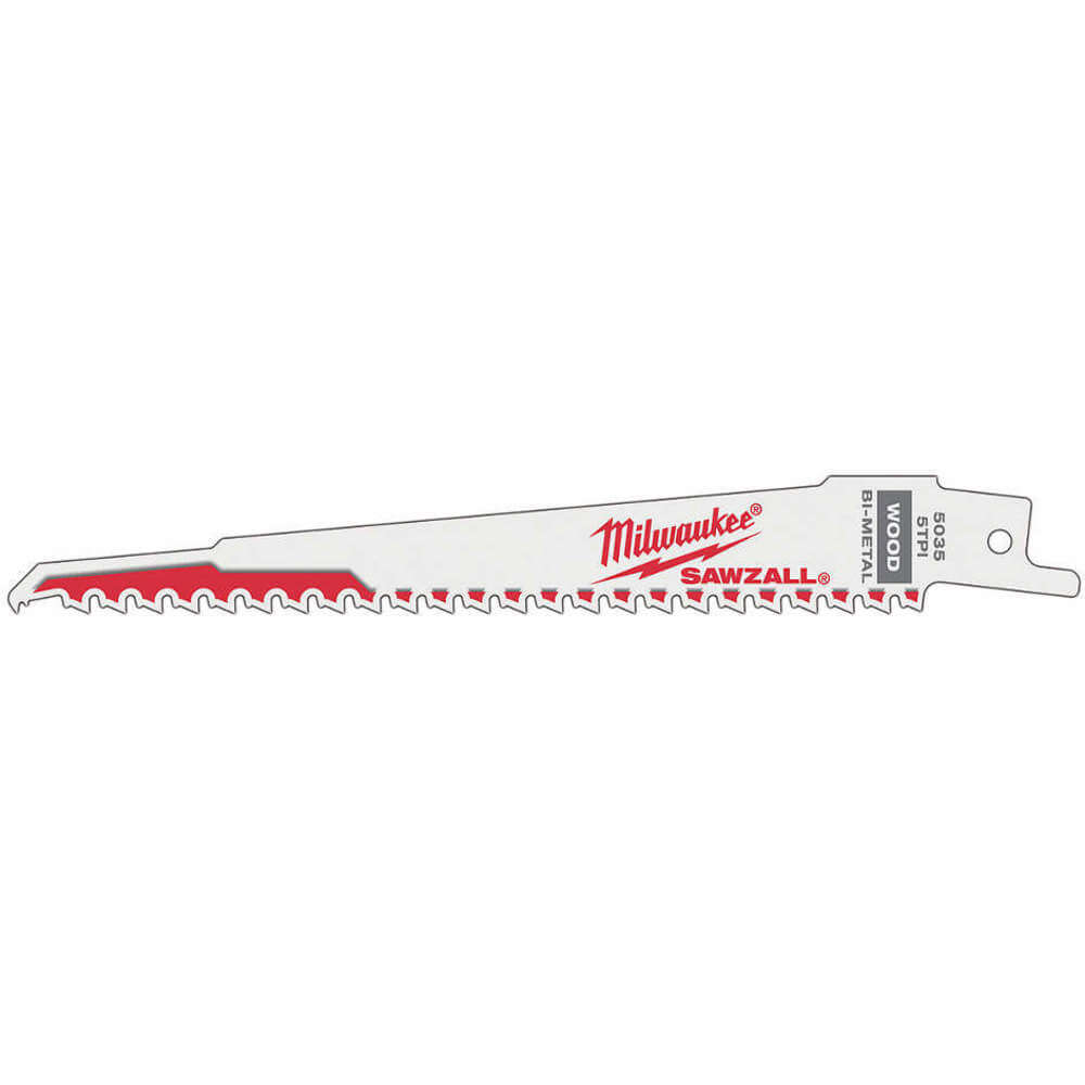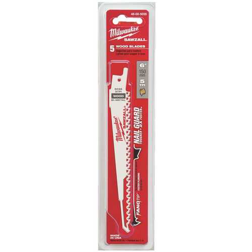 Milwaukee 48-01-6035 6 in. 5 Teeth per in. Wood Cutting SAWZALL Reciprocating Saw Blades White (Pack of 50)