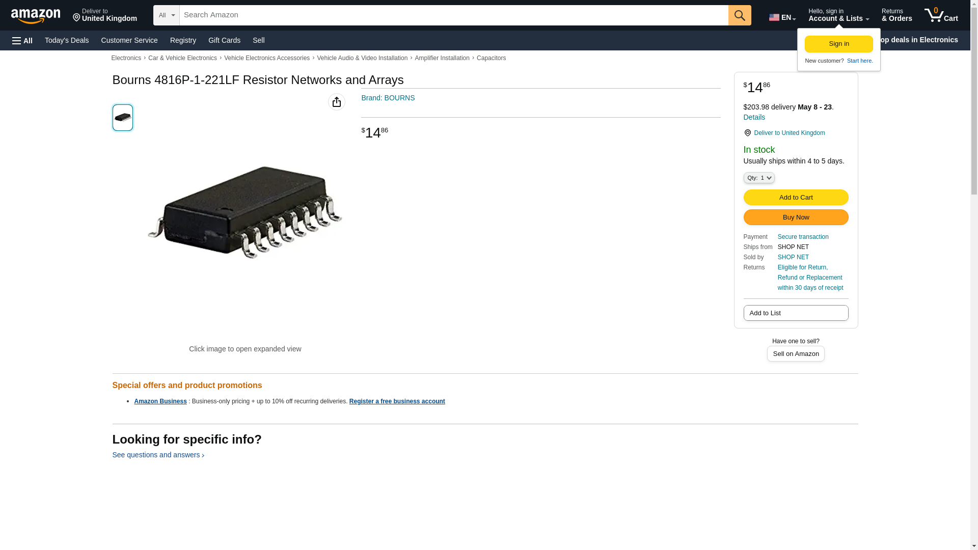 ![]() Onlinecomponents.com | 4816P-1-221LF | 1 | 2632 | 1 | 1 @ $0.54, 800 @ $0.51, 1200 @ $0.48, 2000 @ $0.46, 4000 @ $0.44 |