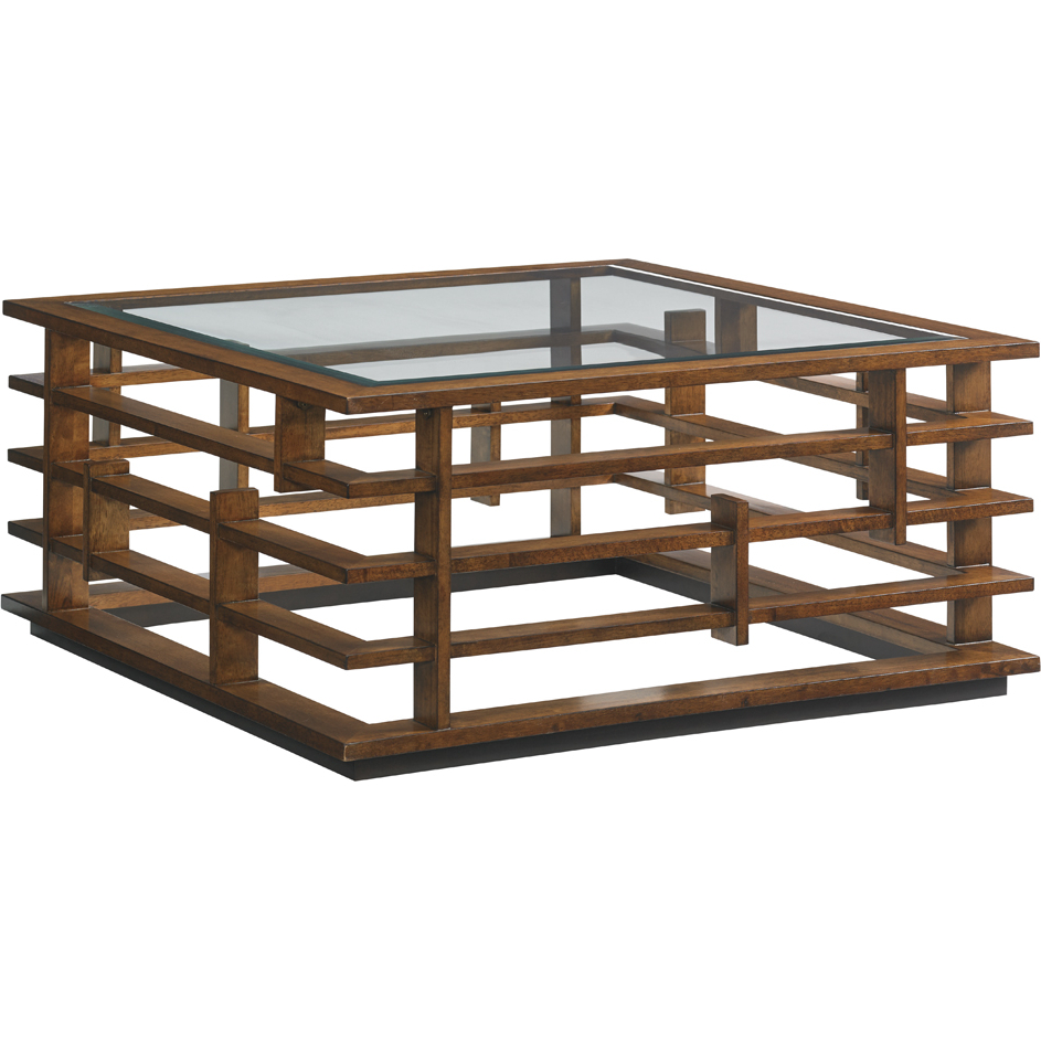 Tommy Bahama 01-0556-943 Nobu Square Cocktail Table in Fretwork Wood & Glass