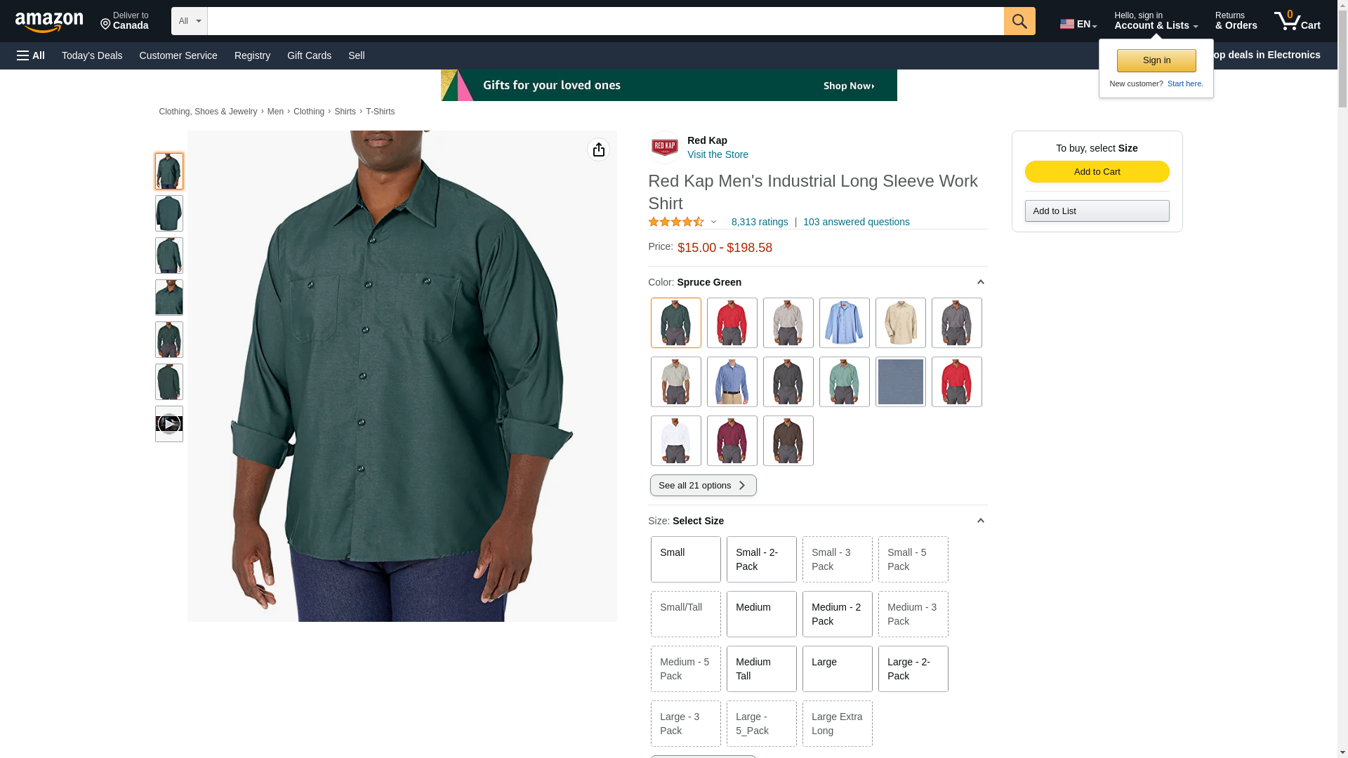 Red Kap Men's Industrial Work Shirt, Regular Fit, Long Sleeve, Spruce Green, Large