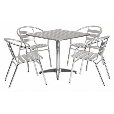 Flash Furniture 31.5'' Square Aluminum Indoor-Outdoor Table Set with 4 Slat Back Chairs