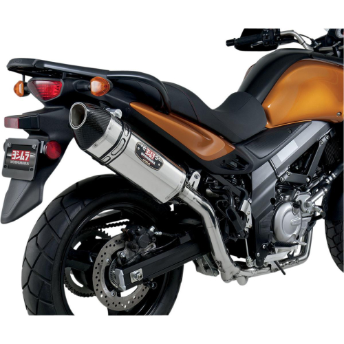 • With its trapezoidal-shaped sleeve that maximizes muffler volume and Superbike styling right from Mladin, Hayden, and Blake Young's race bikes, the R-77 slip-on from Yoshimura is your lightweight, performance exhaust system• The R-77 Slip-On Exhaust consists of a trapezoidal-shaped sleeve, maximizing muffler volume, while offering a sharp silhouette to flow with the new body design• The innovative Carbon Fiber end-cap is an evolution of the R-55 exhaust, featuring sharp edges for an attractive, eye catching appeal• The R-77 muffler's front cap is MIG-welded, while the end cap is riveted using high-end 304-L polished stainless steel rivets and bands• Maximizes torque and usable power for optimum gains throughout the entire powerband• Removable Low-Volume Insert