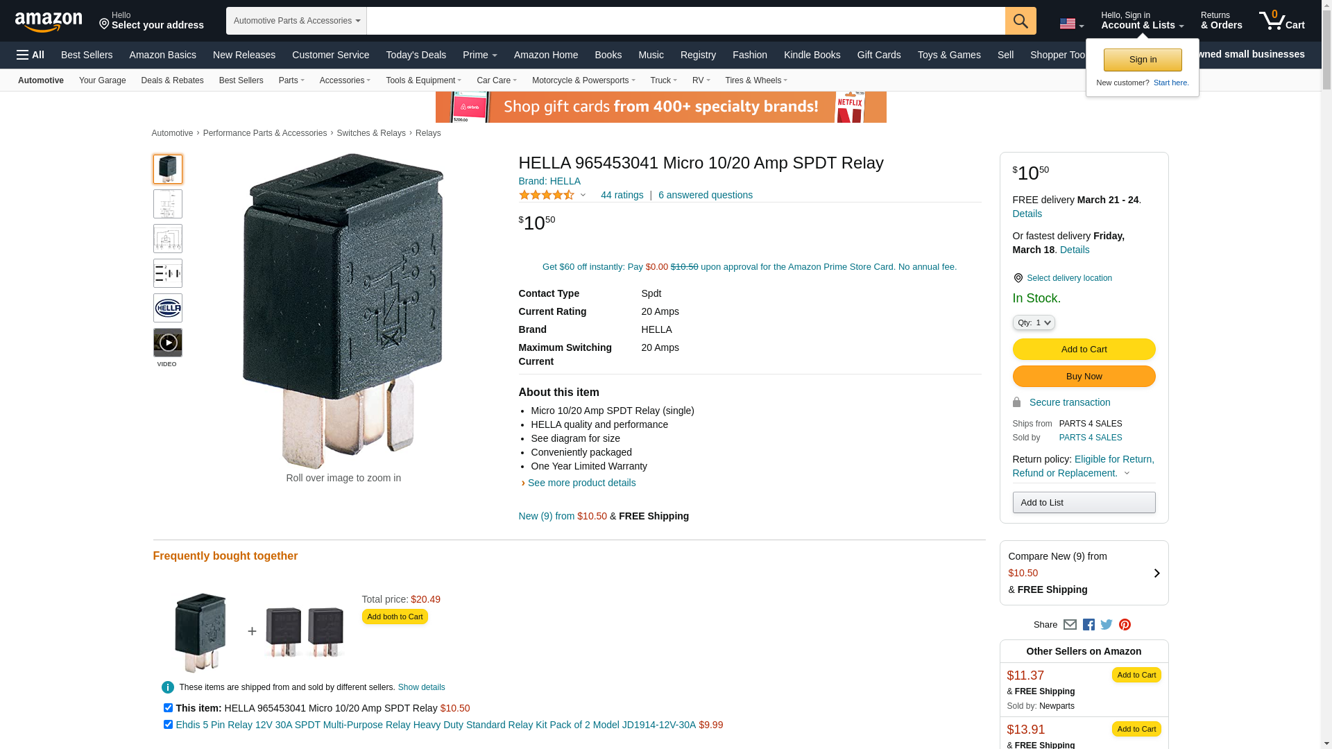 HELLA 965453041 Micro 10/20 Amp SPDT Relay