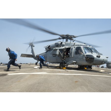LAMINATED POSTER Sailors exit the flight deck after placing chocks and chains on an MH-60S Sea Hawk attached to the T Poster Print 24 x 36