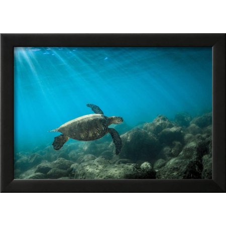 <ul> <li>Title: Green Sea Turtle Swimming Off the North Shore of Oahu, Hawaii</li> <li>Artist: James White</li> <li>Product Type: Framed Art Print</li> <li>Framed in SOHO Black</li> <li>Arrives ready-to-hang for fast, simple installation</li> <li>Framed Size: 20x14 in.</li> <li>Handcrafted in the USA</li> </ul>