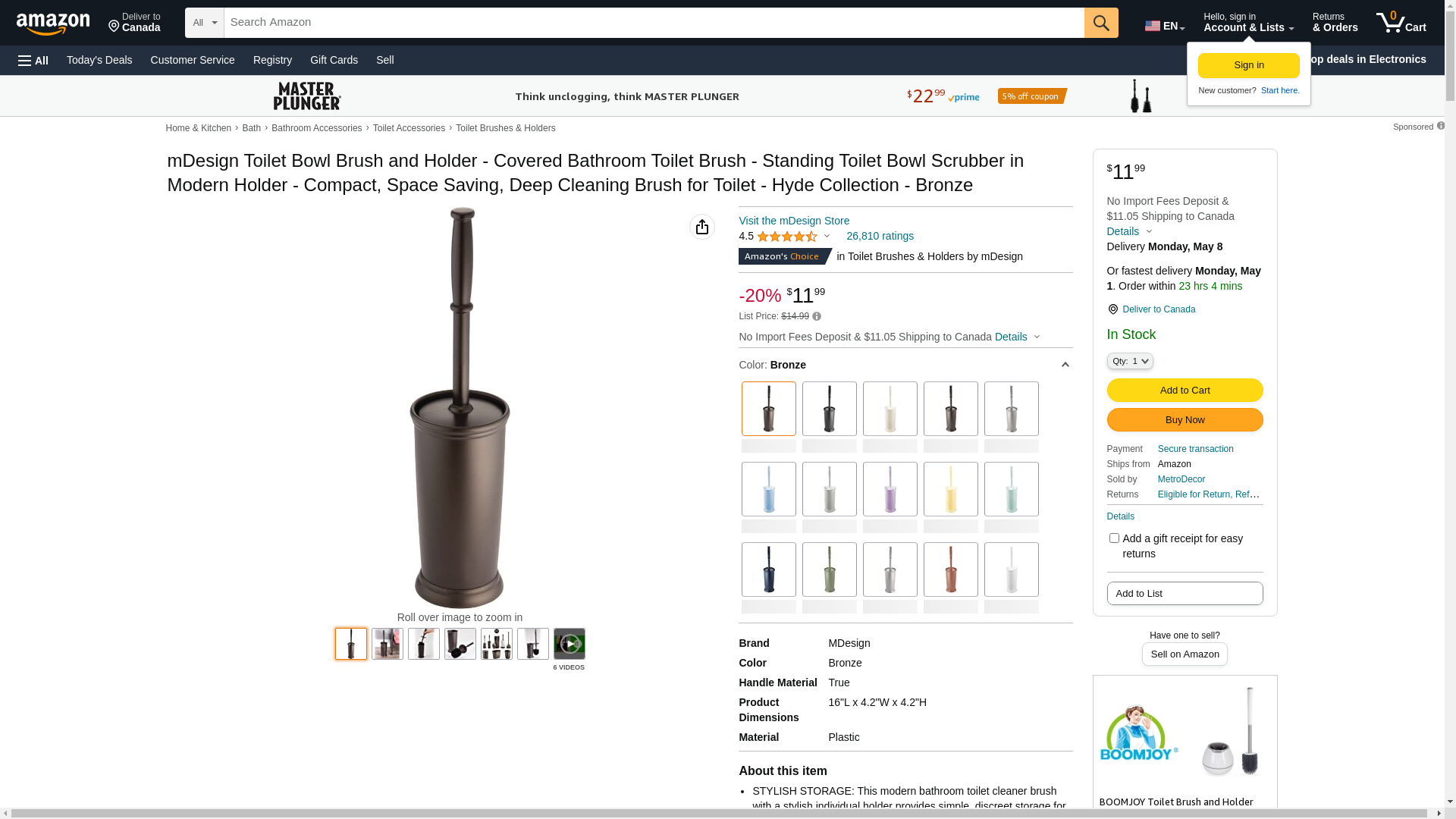 mDesign Compact Freestanding Plastic Toilet Bowl Brush and Holder for Bathroom Storage and Organization - Space Saving, Sturdy, Deep Cleaning, Covered Brush - Bronze: Maxedbuy.com