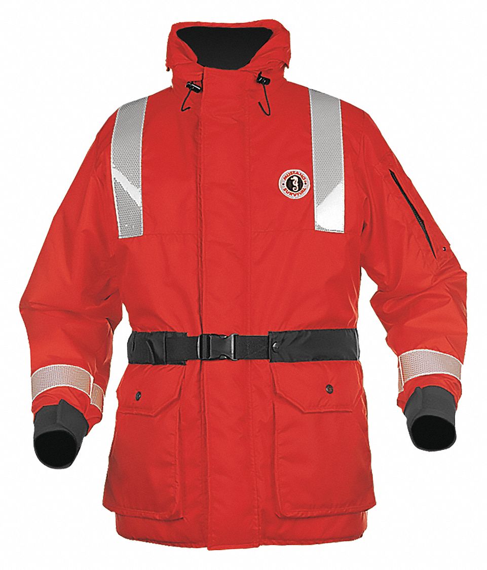 FLOTATION COAT, THERMOSYSTEM, W/BEAVERTAIL/HOOD, REFLECTIVE TAPE, RED, SZ L, NYLON/NEOPRENE