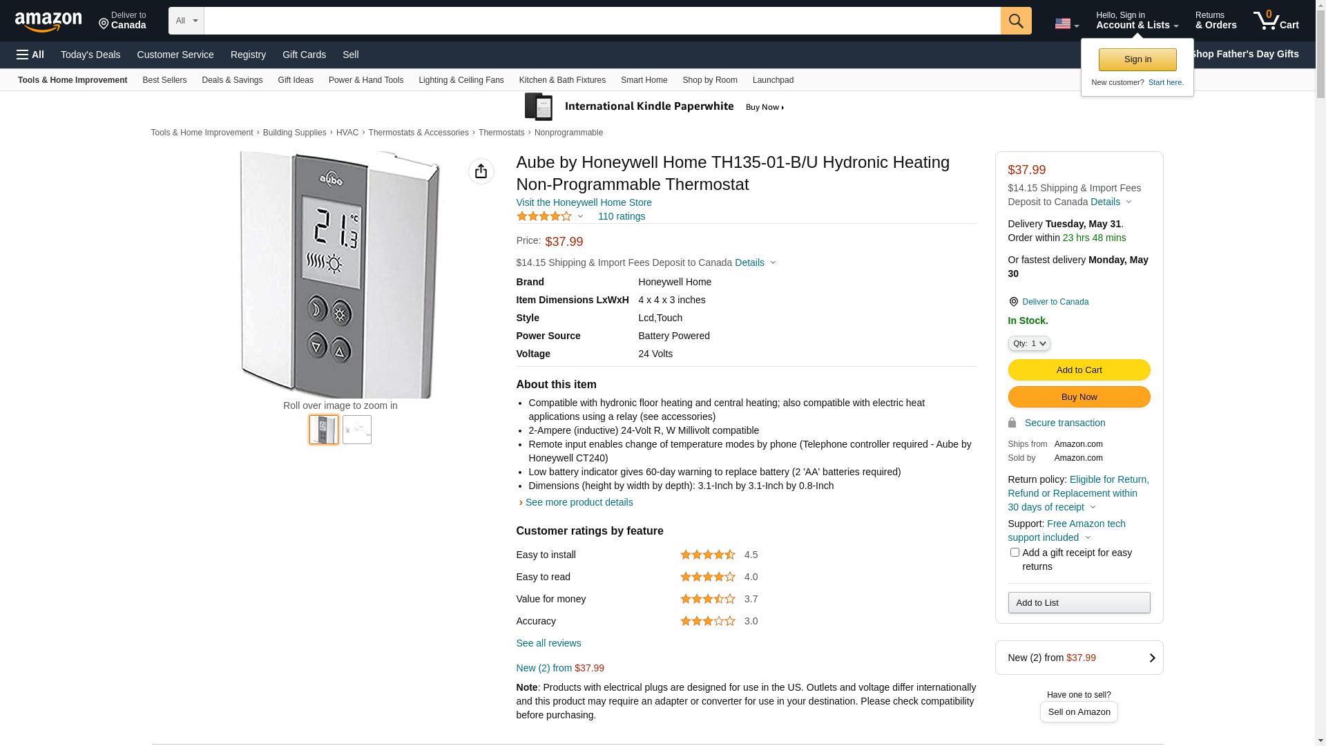 Aube by Honeywell Home TH135-01-B/U Hydronic Heating Non-Programmable Thermostat
