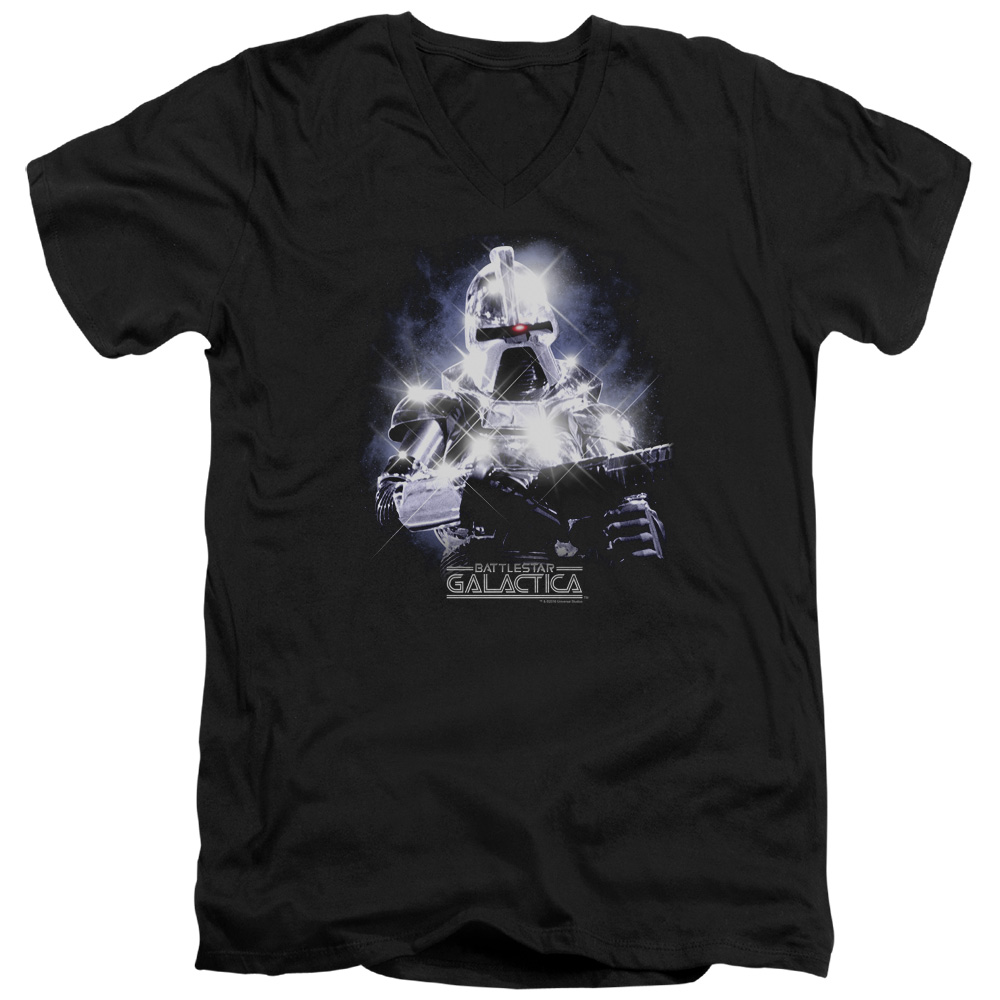 Trevco BSG208-AV-3 BSG & 35th Anniversary Cylon Short Sleeve Cotton Adult Slim Fit V-Neck 30-1 T-Shirt, Black - Larg