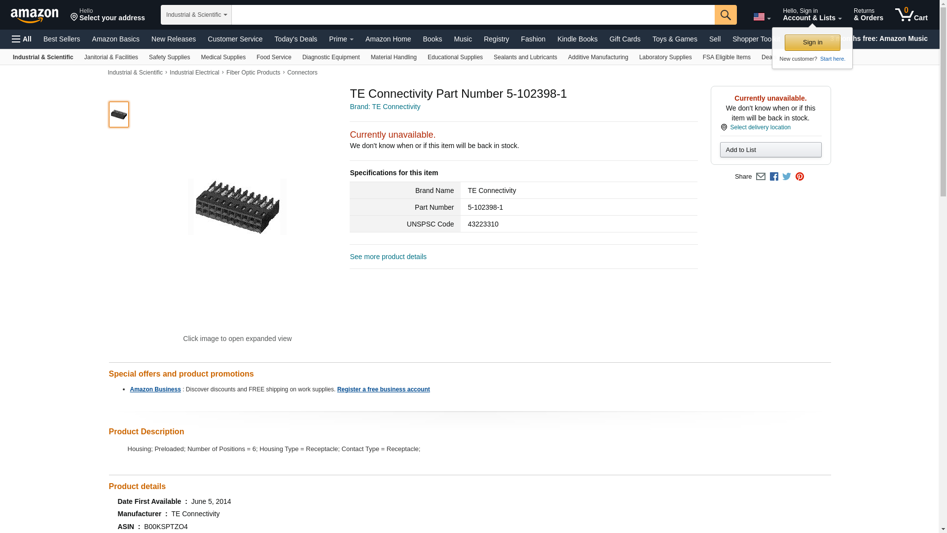 | TE Connectivity | 5-102398-1 | 1 | 1 |