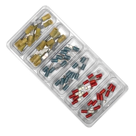 AMP PIDG TERMINAL KIT; Connector Kit Type:Terminals & Splices; Kit Contents:60-Pcs of 12-10, 16-14, 22-16AWG PIDG Pre-Insulated Knife Disconnect Splices; Product Range:PIDG Series RoHS Compliant: Yes