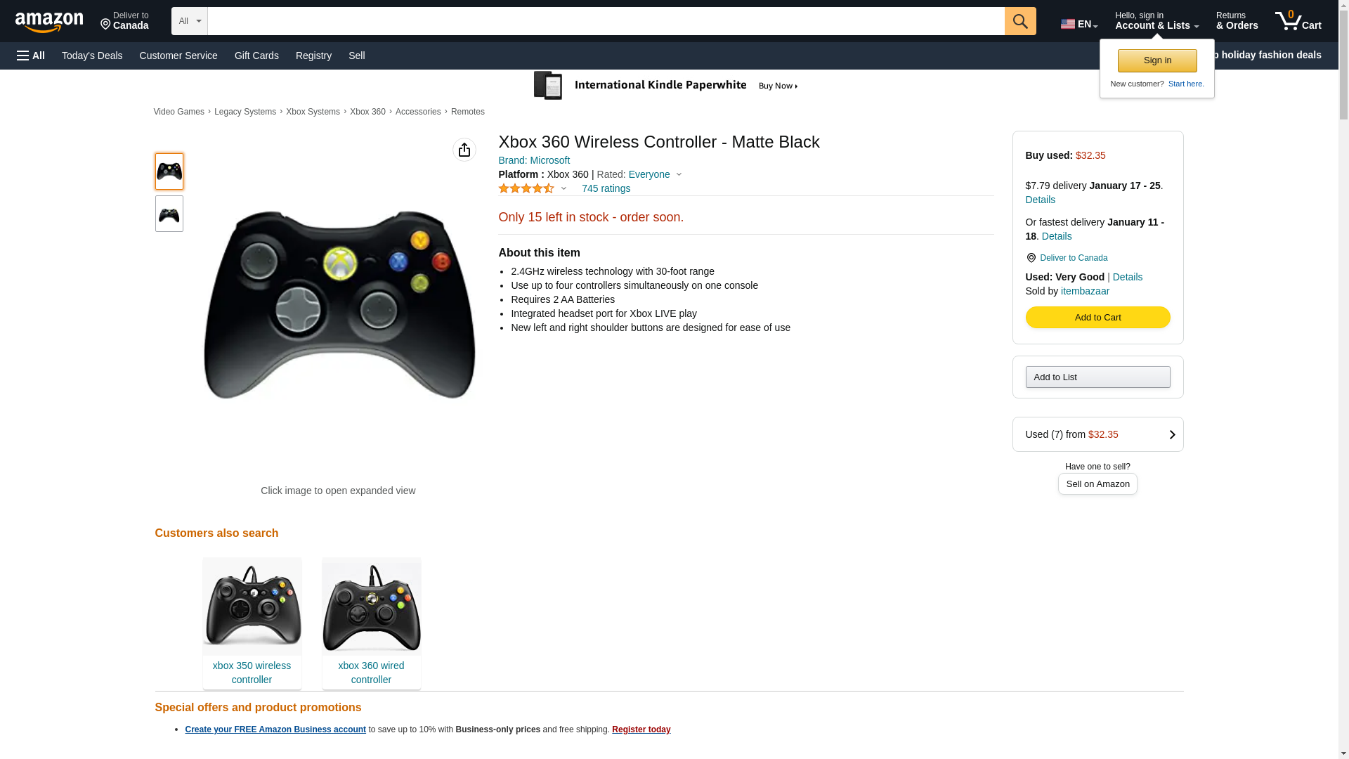 High-performance wireless gaming now comes in black! Using optimized technology, the Microsoft Wireless Controller for Xbox 360 lets you enjoy a 30-foot range and up to 40 hours of life on the two included AA batteries - and when they run low, you're given ample warning so you can connect a Play & Charge Kit (sold separately) for uninterrupted play. Plug the Xbox 360 Headset (sold separately) into the Microsoft Wireless Controller for Xbox 360 to enjoy full two-way voice communication: a wireless first. The same award-winning Xbox 360 Wireless Controller is back in black.
