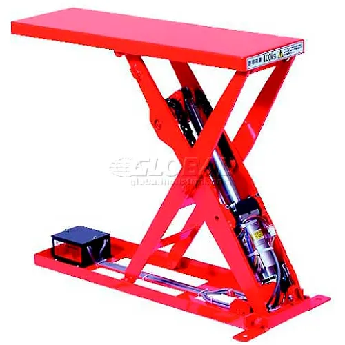 Japanese made lift tables are a unique all-electric group of lift tables that eliminate hydraulic fluid from the production and storage environment. Driven by a ball screw mechanism, these tables eliminate hydraulic drift and offer enhanced safety and ergonomics. Comes with a foot-operated controller.