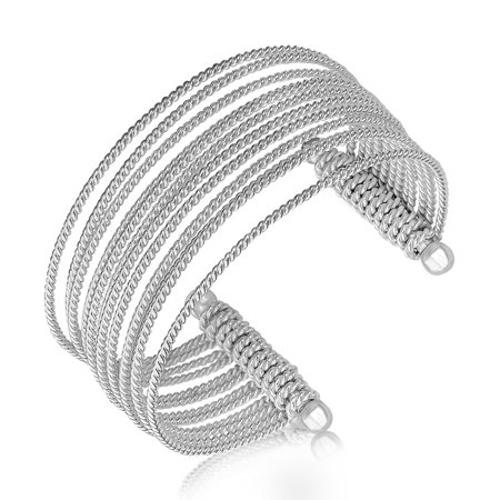 Sterling Silver Multi Strand Cable Wire Cuff with Rhodium Plating