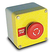 Eaton E22ASB106 22mm Control Station, 1 N.C., E22 22.5 mm, Non-Metallic Control Station, Light Gray Polycarbonate Enclosures, 1 Element, Operator Type:, 40 mm Latch-in, twist to release, Wall Mount Mount, 1NC Contacts, EMERGENCY STOP Legend, 600V Rated, NEMA 4, 4X, 12, 13 Enclosure Rating.