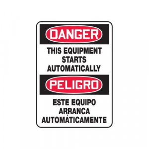 Accuform DANGER THIS EQUIPMENT STARTS AUTOMATICALLY (BILINGUAL) (SBMEQM090VA)
