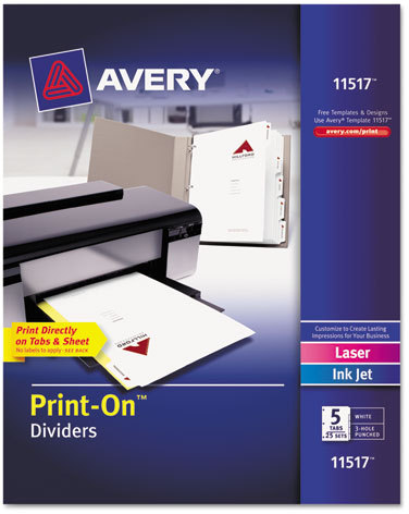 Print-On Dividers, 5-Tab, 3-Hole Punched, 8-1/2 x 11, White, 25 Sets/Box