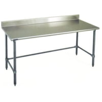 This Eagle Group T3060STE-BS 30" x 60" work table boasts a durable 14 gauge, type 304 stainless steel top that's great for use as a prep area, storage and organization, and a variety of other applications! For added convenience the top is sound-deadened to reduce noise in your work area, while its patented uni-lok recessed gusset design reduces lateral movement for superior stability during use. (4) heavy gauge stainless steel 1 5/8" legs with stainless steel bullet feet provide support for the whole table. Plus, this work table has a 4 1/2" rear upturn and 1 1/2" rolled front edge. <br><br><b><u>Overall Dimensions:</b></u> <br>Length: 60" <br>Width: 30" <br>Height: 39 5/8" <br> Work Surface Height: 35 1/8" <br>