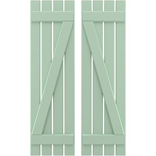 Ekena Millwork ARW102SB415X31SGH Americraft Four 2 Exterior Real Wood Spaced Board-n-Batten Shutters w/Z-Bar (Per Pair), 15 1/2"W x 31"H, Seaglass