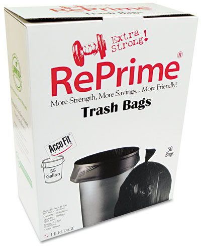 Heritage Bag Company Can Liner, Accufit, 55 Gal., 1.3mil, 40"x53", 50/BX, Black