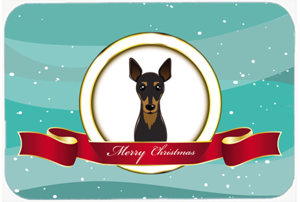 Caroline's Treasures BB1550LCB Min Pin Merry Christmas Glass Cutting Board Large Decorative Tempered Glass Kitchen Cutting and Serving Board Large Size Chopping Board