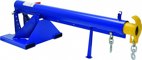 Unique performance, convenience, and safety features are built into every Lift Master Boom. Fabricated from structural steel with welding to meet AWS creates a rugged and durable boom that will provide long term service. This unit features a locking detent. A safety restraint secures the boom to the fork truck for safe operation. Includes two (2) lifting hooks. Limited Warranty: 1 year. Uniform Capacity (pounds): 6,000, Fork Pocket Center (in.): 36, Fork Pocket Width (in.): 7-1/4 x 2-1/4, Restraint Length (in.): 36, Boom Style: Telescoping, Minimum/Maximum Hook Point (in.): 36/144, Single-Hook Capacity at 36" (lbs.): 6000, Single-Hook Capacity at 48" (lbs.)
