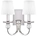 Wall Sconce with Polished Nickel Finish, Mouth Blown Ribbed Optic Glass Accents and White Gossamer Pleated Shades (included)