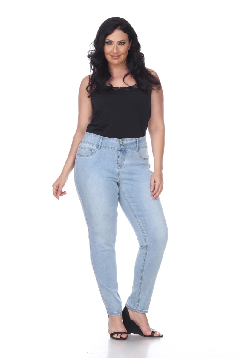 White Mark PS529-1-22 Plus Size Super Stretch Denim, Light Blue, Size - 22