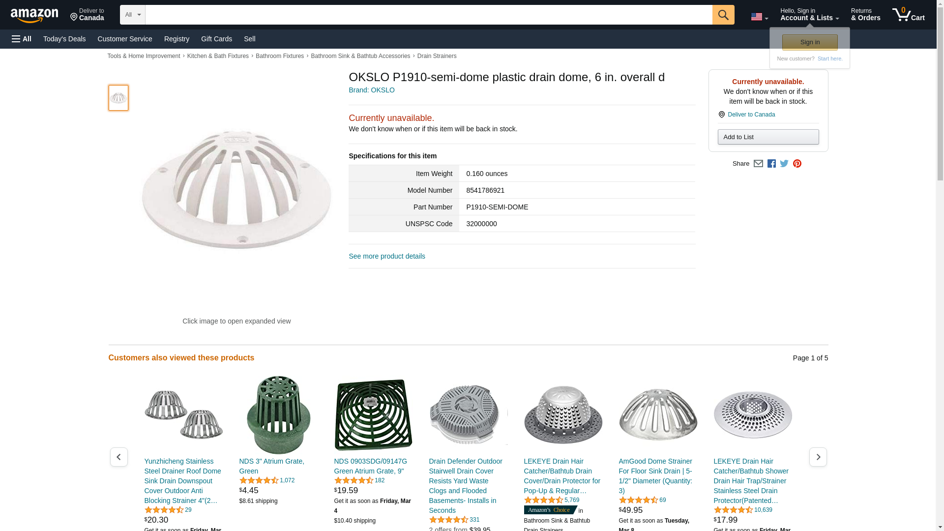 OKSLO P1910-semi-dome plastic drain dome, 6 in. overall d