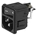 CONN, IEC POWER ENTRY MODULE, PLUG, 10A; Connector Type:IEC C14; Current Rating:12A; Voltage Rating:250VAC; Fuse Holder:-; Fuse Size Held:-; Connector Terminals:Quick Connect; Connector Mounting:Snap-In, Flange Mount; IP Rating:IP40 RoHS Compliant: Yes
