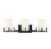 The Savoy House Eaton 3-light bath vanity light has an elegant and appealing look with shades of clear and white opal glass, jewelry-like prong detailing and a two-tone finish of black and brass. Create the illusion and beauty of candlelight with Eaton! This bath light is 7.5" in height, 24" in width and extends 7.5" from the wall. Uses three standard size bulbs of up to 60 watts per bulb. Damp area rated.