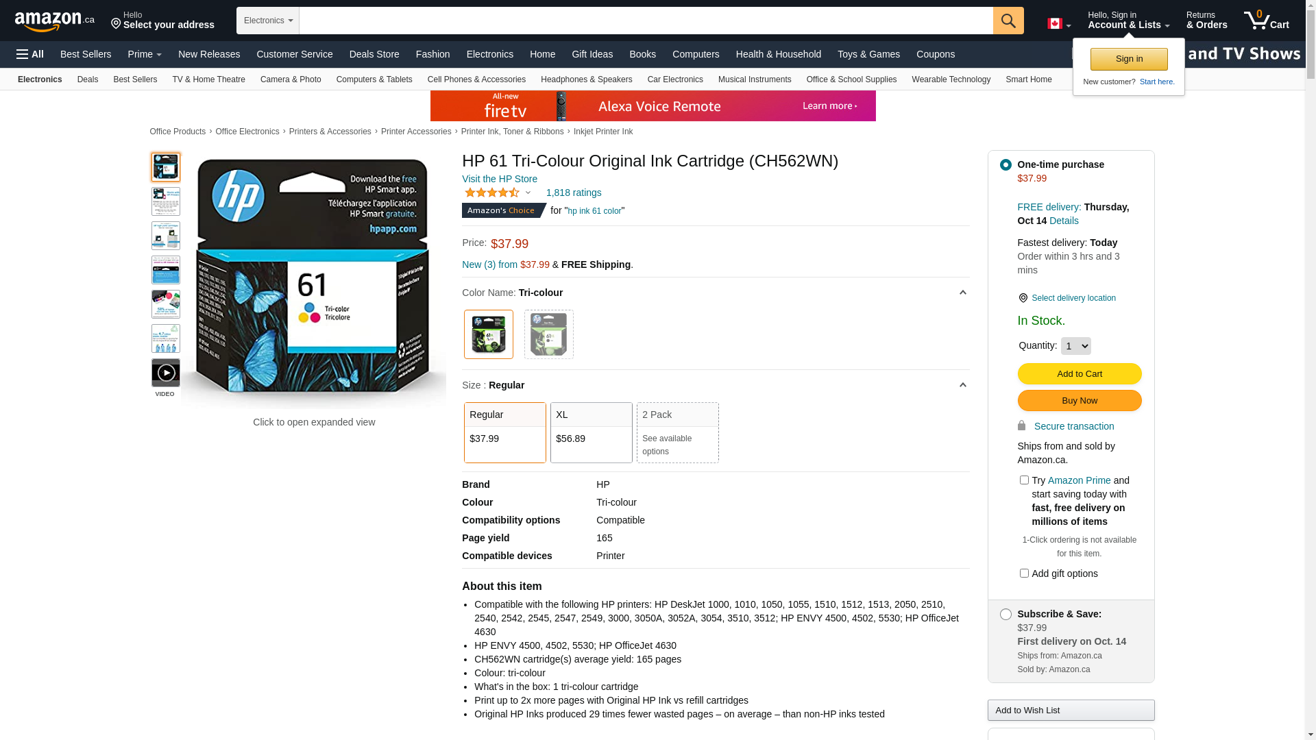 HP 61XL Ink Cartridge, Tri-color High Yield (CH564WN) for HP Deskjet 1000 1010 1012 1050 1051 1055 1056 1510 1512 1514 1051 2050 2510 2512 2514 2540 2541 2542 2543 2544 2546 2547 3000 3050 3051 3052 3054 3056 3510 3511 3512HP ENVY 4500 4502 4504 5530 5531 5532 5534 5535 HP Officejet 2620 2621 4630 4632