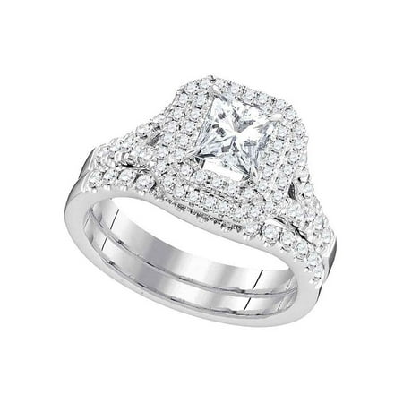 <ul> <li>18kt White Gold</li> <li>1 & 5/8 Carats total weight --- 1.00 carat center solitaire</li> <li>Widest point width: 7 mm (.28 inches )<br />; Width of shank: 1.5 mm</li> <li>7.36 grams (approximately)</li> <li>Ring size selectable. All diamonds are natural and conflict-free in origin.</li> </ul>