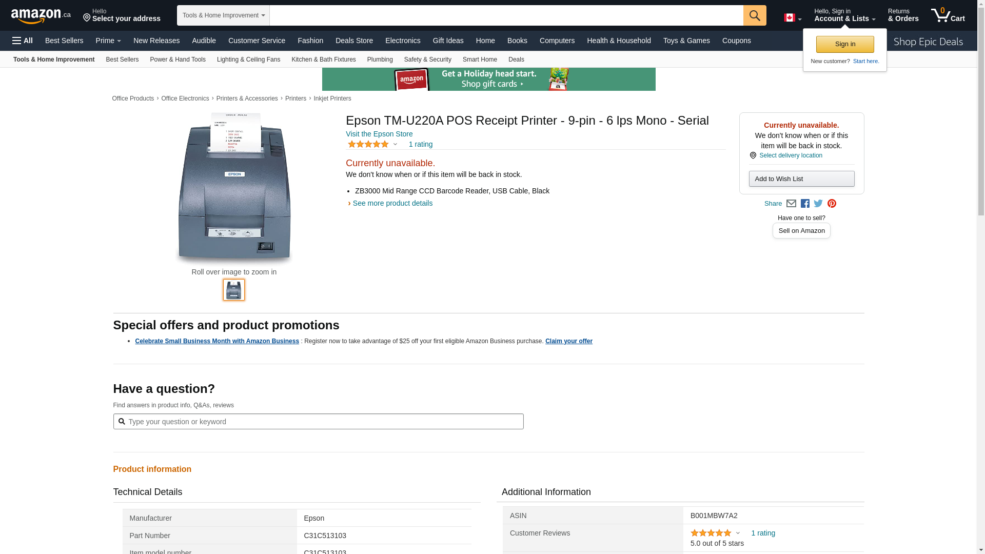 Epson TM U220A - receipt printer - two-color (monochrome) - dot-matrix | Grand & Toy