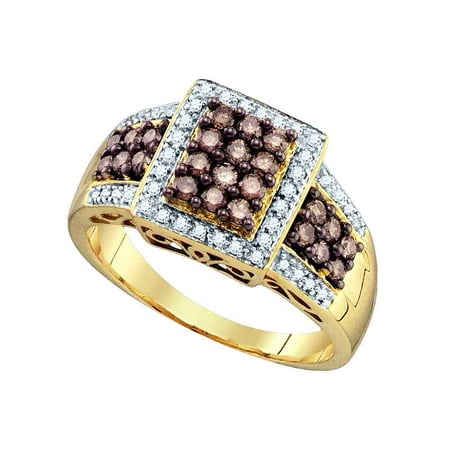 10kt Yellow Gold Womens Round Cognac-brown Color Enhanced Diamond Square Cluster Ring 5/8 Cttw. †Combined diamond weight of 5/8 carats total weight represents a range of 0.59 - 0.70 cts. t.w.