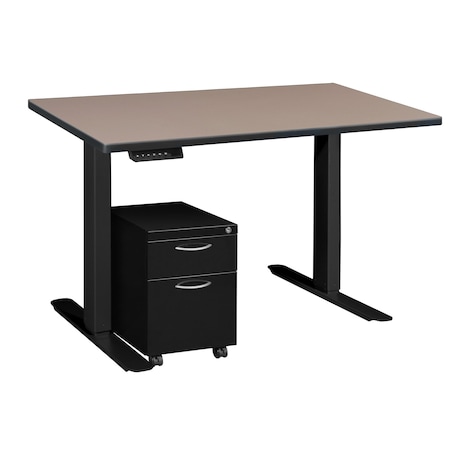 Esteem 48 In. Office Standing Adjustable Power Desk with Black Mobile Pedestal- Beige/Black