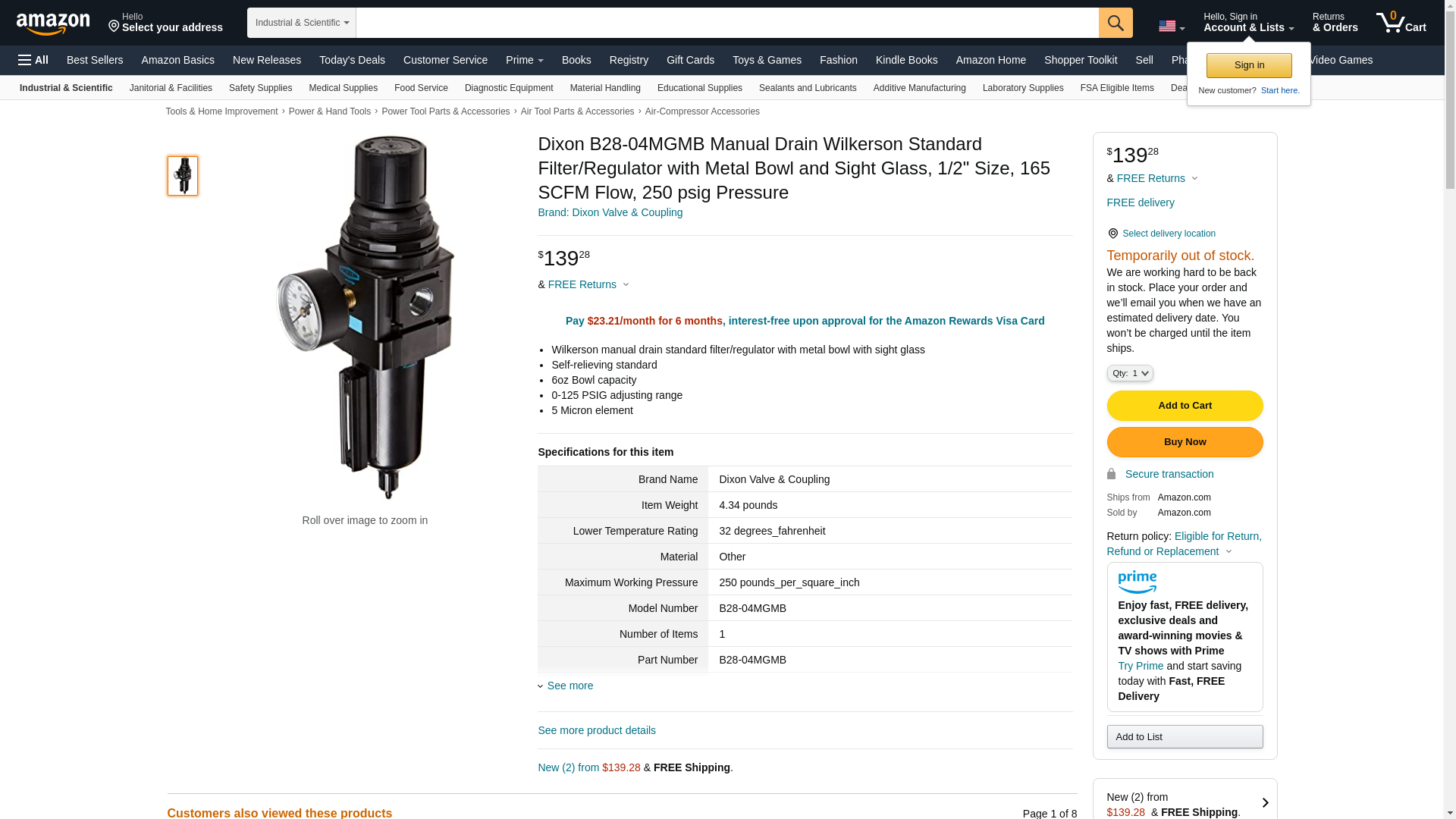 ![]() industrialzone.com | B28-04MGMB | 1 | -2 | 1 | 1 @ $201.41 |