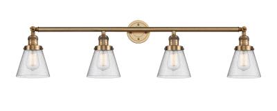 4 Light Small Cone 42" Brushed Brass Bathroom Fixture with Seedy glass